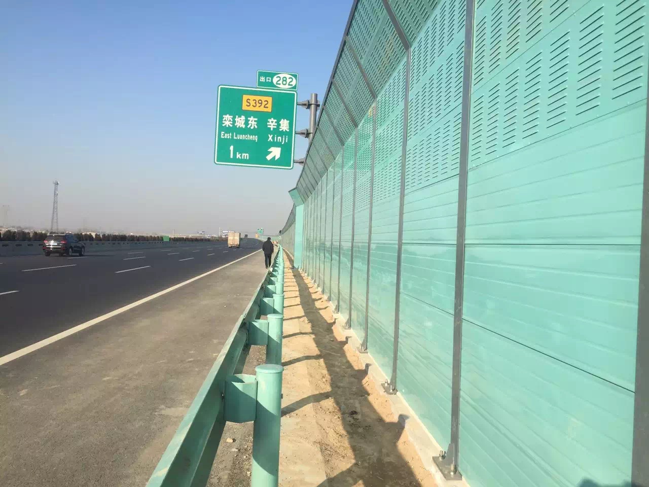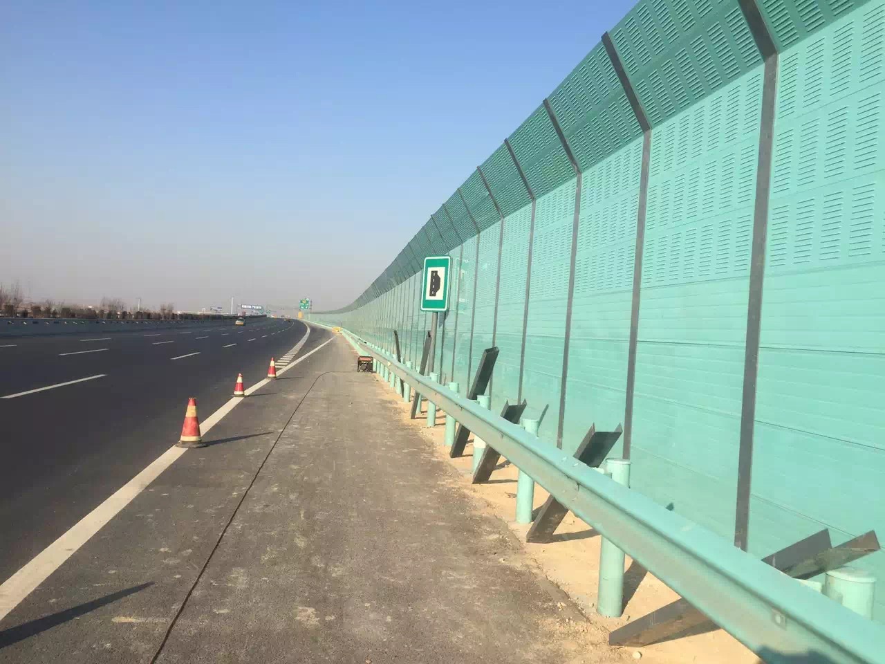 公路聲屏障減噪量與噪聲的頻率、屏障的高度以及聲源與接收點之間的距離等因素有關。聲屏障的減噪效果與噪聲的頻率成分關系很大,對大于Hz的高頻聲比一Hz左右的中頻聲的減噪效果要好,但對于Hz左右的低頻聲.則由于聲波波長比較長而很容易從屏障上方繞射過去,所以效果就差。通常,聲屏障對高頻聲可降低l—dB。聲屏障的高度,可根據聲源與接收點之間的距離設計,屏障的高度增加,則其減噪量可增加dB,為了使屏障的減噪效果較好,應盡量使屏障安裝靠近聲源或接收點。