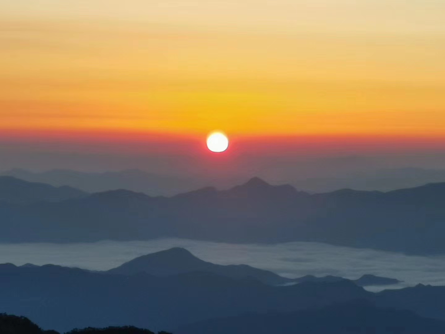 天早上,我們起早爬上光明頂?shù)却?yáng)的升起,當(dāng)太陽(yáng)緩緩升起的時(shí)候,我們迸發(fā)出熱烈的呼喊聲,大聲的喊著,太陽(yáng)我們來(lái)了,黃山回蕩著我們的聲音。當(dāng)太陽(yáng)升起后,我們又開(kāi)始游覽黃山的云海風(fēng)光,一路走走停停,一路拍拍黃山的美景。