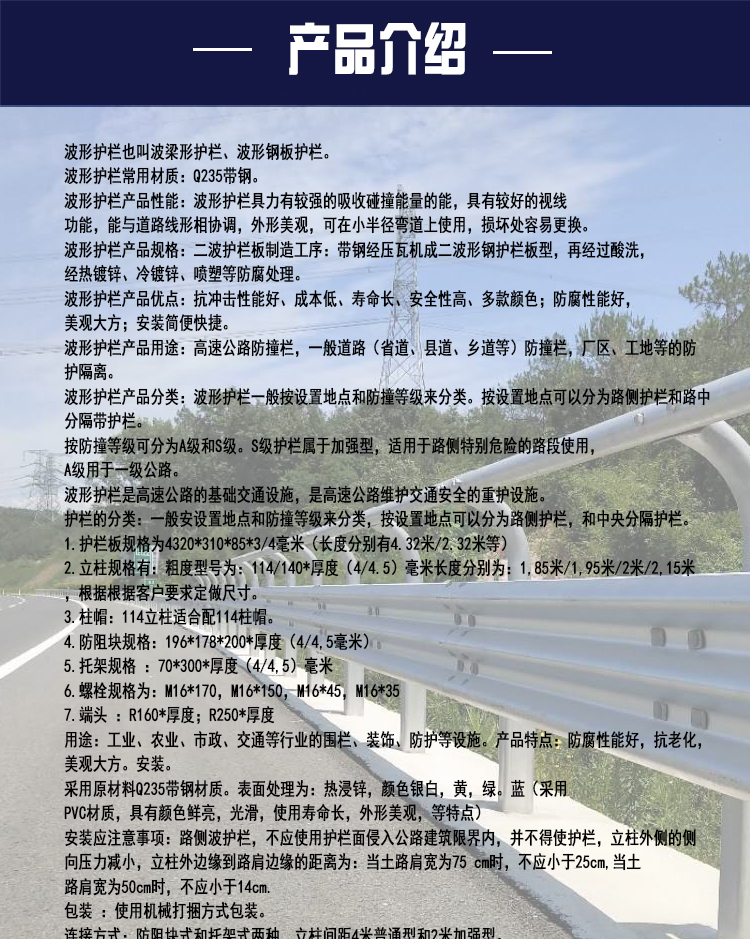 合肥金屬制品有限公司是一家生產波形護欄、波形梁護欄、橋梁護欄、聲屏障、隔音屏障、旋轉式護欄、轉經筒護欄、工字形護欄、U形護欄、京式護欄、道路護欄、道路護欄、市政護欄、W板護欄、波紋板護欄、二波形護欄、三波加牛角護欄、波形梁鋼護欄、公路撞護欄、公路護欄板、景觀護欄、公路標志桿、波紋管涵等系列的設計、生產及銷售型企業。公司地處合肥市瑤海區龍崗經濟開發區。公司擁有公路護欄板生產設備,生產品質合標準,采用標準和計算機CAD輔助設計繪圖系統進行產品設計,制造流程采用全自動標準化的生產方式,精度高,速度快。完善的生產設備,精良的生產以及嚴密的測試系統。